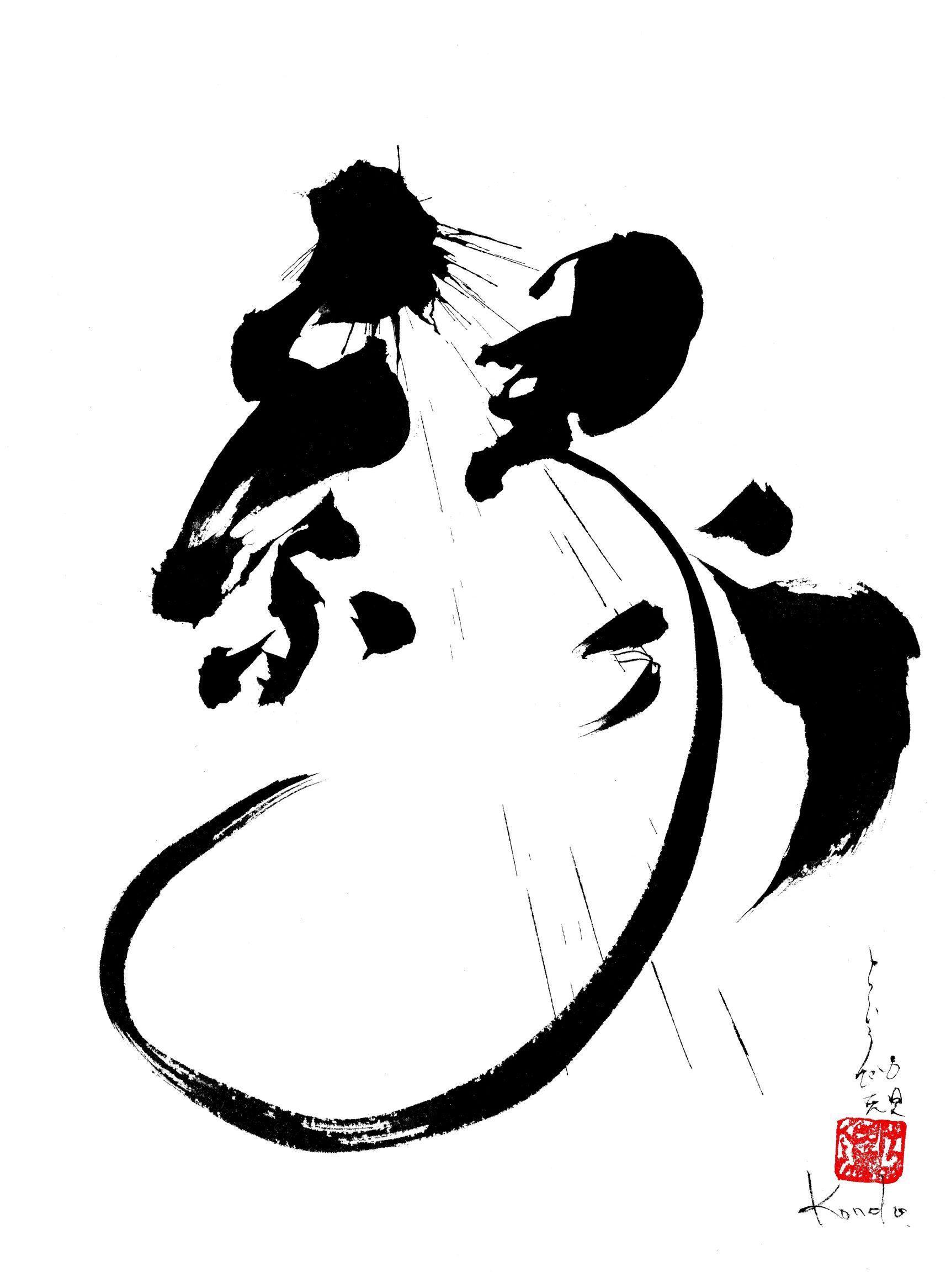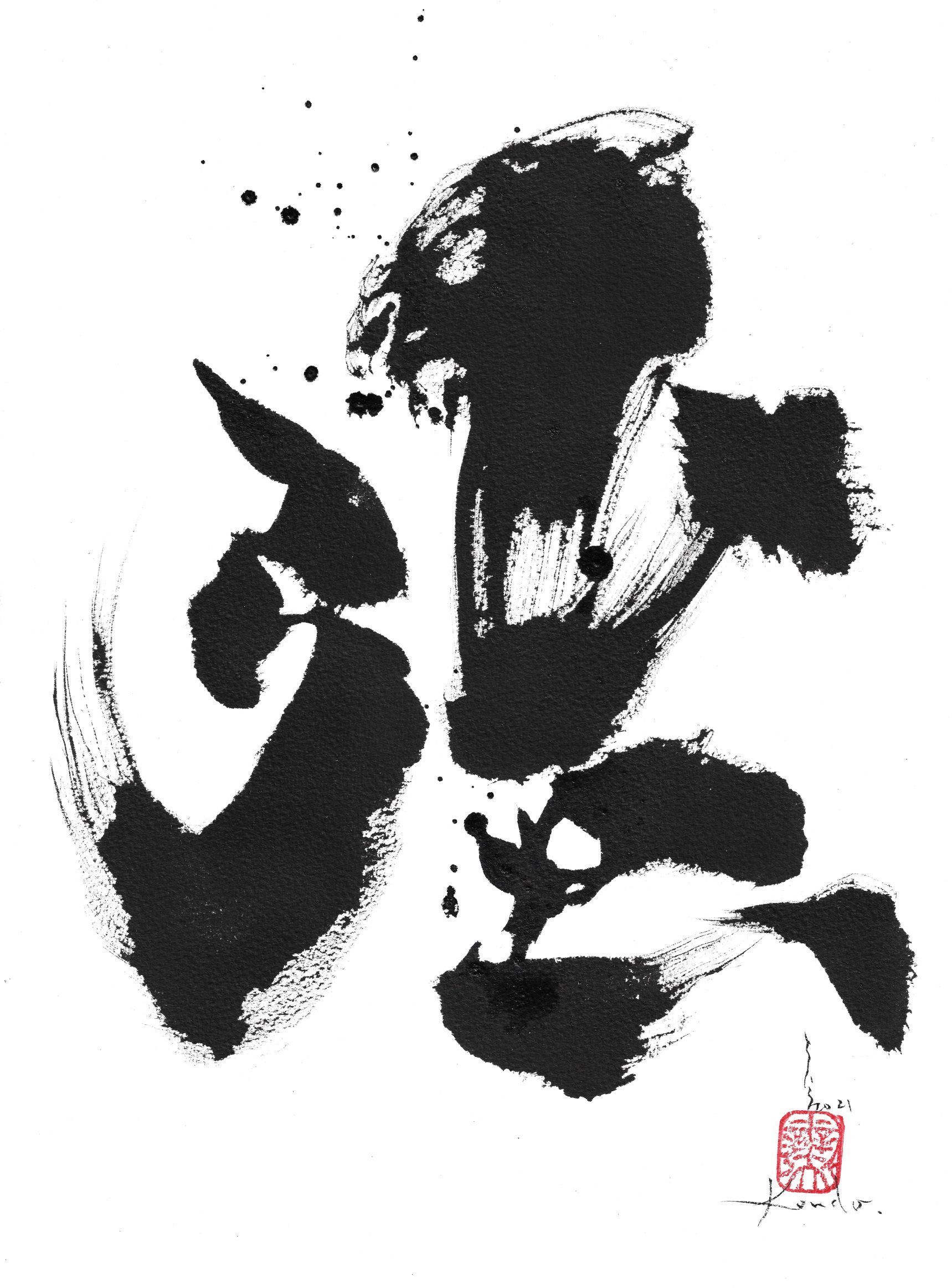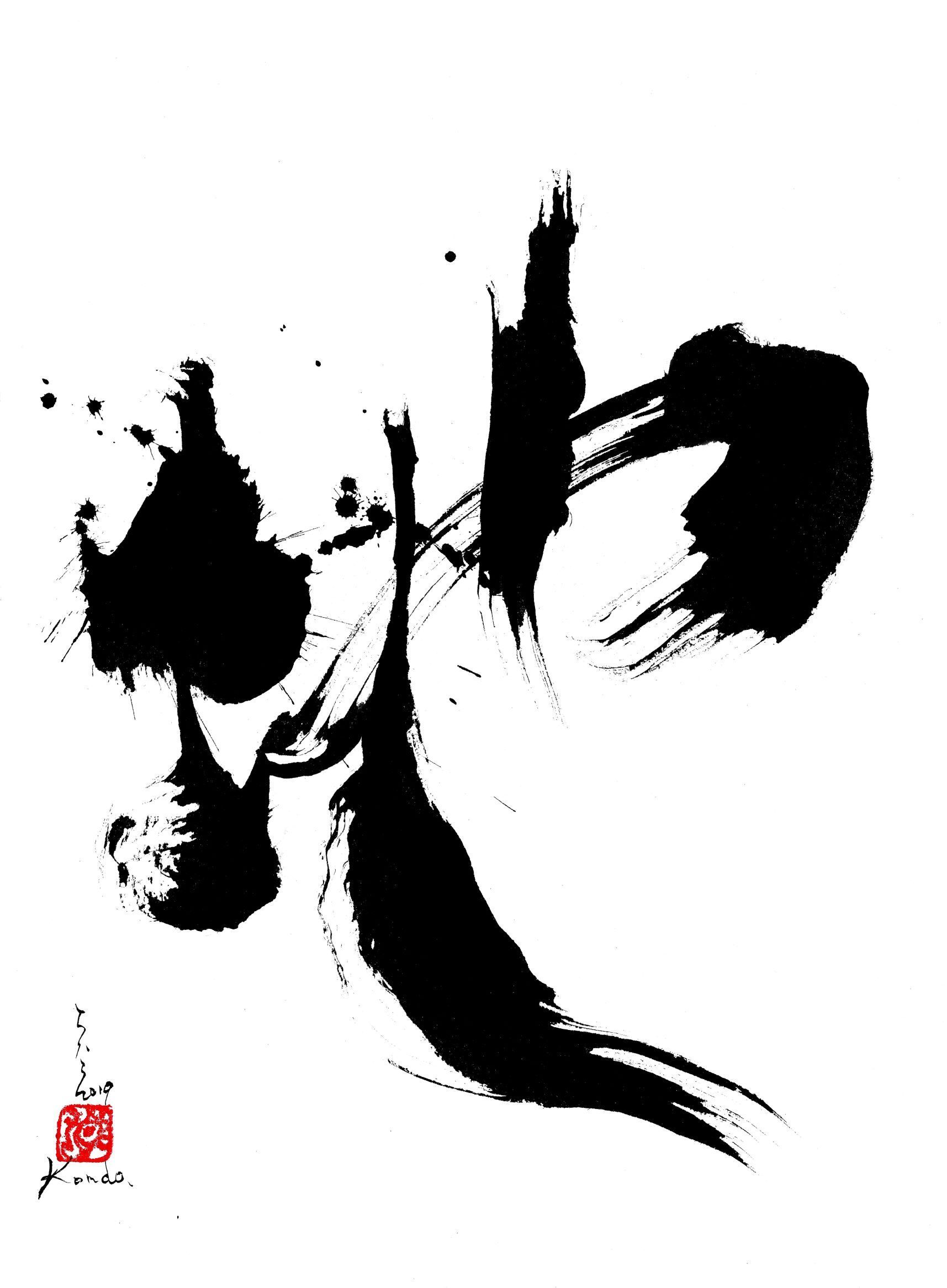 In deze nieuwe reeks kanji kalligrafieën laat Chihiro Kondo zich leiden door de specifieke cadans van de gesproken Japanse taal.